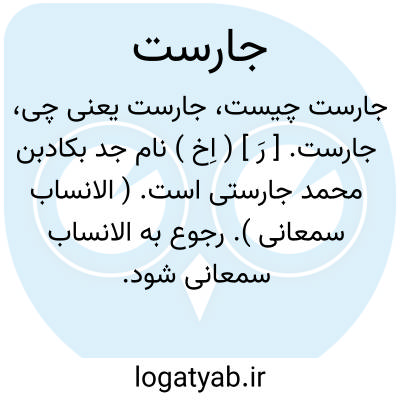 جارست. [ رَ ] ( اِخ ) نام جد بکادبن محمد جارستی است. ( الانساب سمعانی ). رجوع به الانساب سمعانی شود.