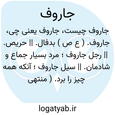 لغت نامه دهخدا جاروف. ( ع ص ) بدفال. || حریص. || رجل جاروف؛ مرد بسیار جماع و شادمان. || سیل جاروف؛ آنکه همه چیز را برد. ( منتهی الارب ). || ( اِ ) صاروج.