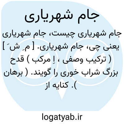 جام شهریاری. [ م ِ ش َ ] ( ترکیب وصفی، اِ مرکب ) قدح بزرگ شراب خوری را گویند. ( برهان ). کنایه از قدح بزرگ که بدان شراب خورند. ( آنندراج ):