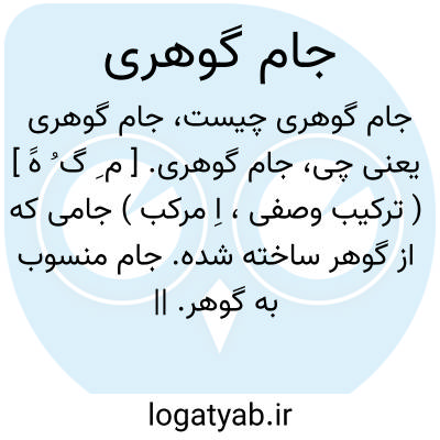 جام گوهری. [ م ِ گ ُ هََ ] ( ترکیب وصفی، اِ مرکب ) جامی که از گوهر ساخته شده. جام منسوب به گوهر. || کنایه از پیاله بلوری. ( برهان ). پیاله حلبی و مانند آن. ( آنندراج ). || کنایه از لب و دهان معشوق. ( برهان ) ( آنندراج ):
