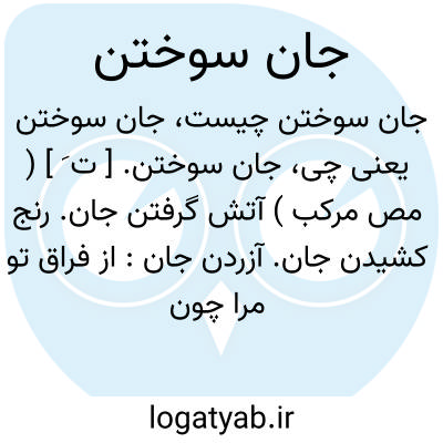 جان سوختن. [ ت َ ] ( مص مرکب ) آتش گرفتن جان. رنج کشیدن جان. آزردن جان: از فراق تو مرا چون سوخت جان چون ننالم بی تو ای جان جهان.مولوی. || آزردن جان: برغم من بحریفان می شبانه مکش مسوز جان من و آه عاشقانه مکش.فغانی شیرازی ( از ارمغان آصفی ).