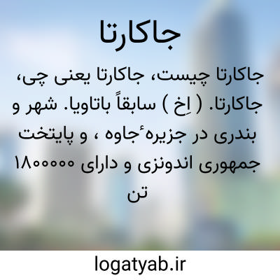 سابقا (( باتاویا ) ) ( بطاویه ) نامیده میشد. شهر و بندری جزیره جاوه. پایتخت جمهوری اندونزی ۴۵۷۶٠٠٠ سکنه مرکز صنعتی ( محصولات غذایی کائوچوک کشتی سازی و مصنوعات مکانیکی ).
