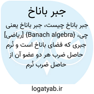 {Banach algebra} [ریاضی] جبری که فضای باناخ است و نُرم حاصل ضرب هر دو عضو آن از حاصل ضرب نُرم های آن دو عضو تجاوز نمی کند