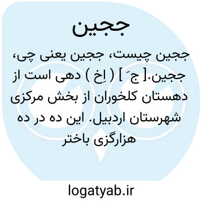 ججین.[ ج َ ] ( اِخ ) دهی است از دهستان کلخوران از بخش مرکزی شهرستان اردبیل. این ده در ده هزارگزی باختر اردبیل و دوازده هزارگزی شوسه اردبیل به تبریز واقع شده ومحلی کوهستانی و هوای آن معتدل است و پانصد و چهارده تن سکنه دارد. آب آنجا از چشمه تأمین میشود. و محصول آن غلات و حبوبات و شغل اهالی زراعت و گله داری و راه آن مالرو است. ( از فرهنگ جغرافیایی ایران ج 4 ).