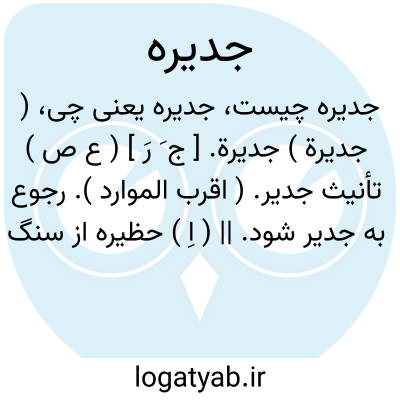 ( جدیرة ) جدیرة. [ ج َ رَ ] ( ع ص ) تأنیث جدیر. ( اقرب الموارد ). رجوع به جدیر شود. || ( اِ ) حظیره از سنگ برآورده. ( منتهی الارب ) ( اقرب الموارد ) ( آنندراج ). || مطلق حظیرة. ( از منتهی الارب ) ( از آنندراج ). || در نسخه های خطی مهذب الاسماء کتابخانه مؤلف به این صورتها معنی شده: شواکله و شوالکه گوسفند. ( از مهذب الاسماء ). || طبیعت. ( منتهی الارب ) ( اقرب الموارد ) ( مهذب الاسماء ).