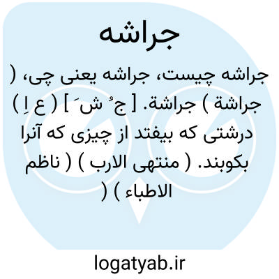 ( جراشة ) جراشة. [ ج ُ ش َ ] ( ع اِ ) درشتی که بیفتد از چیزی که آنرا بکوبند. ( منتهی الارب ) ( ناظم الاطباء ) ( آنندراج ). آن چیز درشتی که از چیزی بهنگام کوبیدن بیفتد. درشتی آنچه بیفتد. ( از اقرب الموارد ). درشتی آنچه بیفتد از چیزی که آن را بکوبند بعد از بیختن. و در تداول فارسی نخاله گویند. ( یادداشت مؤلف ). || مشاطه یعنی چیزی که از سر بهنگام شانه کردن بیفتد. ( اساس و لسان از ذیل اقرب الموارد ).