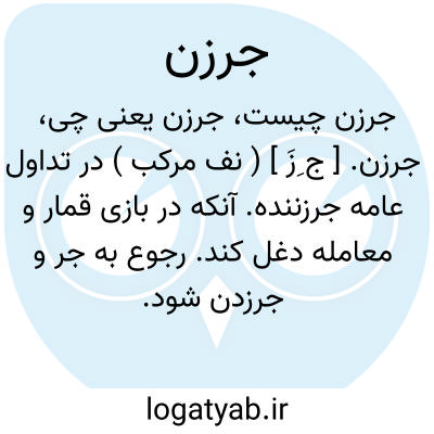 جرزن. [ ج ِزَ ] ( نف مرکب ) در تداول عامه جرزننده. آنکه در بازی قمار و معامله دغل کند. رجوع به جر و جرزدن شود.