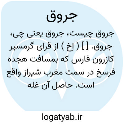 جروق. [ ] ( اِخ ) از قرای گرمسیر کازرون فارس که بمسافت هجده فرسخ در سمت مغرب شیراز واقع است. حاصل آن غله و برنج و تنباکو است و آب آنجا از رودخانه تأمین میشود. ( از مرآت البلدان ج 4 ص 223 ): و والدمحرر این فقرات میرزامحمد علی کوهمره ای را که در آن اوقات بکلانتری محال کوهمره و جروق که از جمله محال تصرفی اجداد... ( از مجمل التواریخ گلستانه ص 289 ).