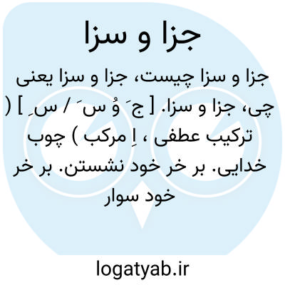 جزا و سزا. [ ج َ وُ س َ / س ِ ] ( ترکیب عطفی، اِ مرکب ) چوب خدایی. بر خر خود نشستن. بر خر خود سوار شدن. دم گرگ بر پای میش بستن ( کنایه از انتقام ضعیف از قوی گرفتن ). مکافات اعمال. کیفر. ( مجموعه مترادفات ص 109 ). این لفظ برای پاداش عمل آید. ( ازکشف ) ( از بهارعجم ). و در برهان جزای نیکی و بدی و در سراج مکافات و سزای بدی. ( از مجموعه مترادفات ).