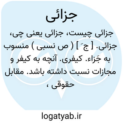جزائی. [ ج َ ] ( ص نسبی ) منسوب به جَزاء. کیفری. آنچه به کیفر و مجازات نسبت داشته باشد. مقابل حقوقی، چنانکه گویند دادگاه جزائی و حقوقی یا دعوای جزائی و حقوقی. یا فلان عمل جنبه جزائی دارد.