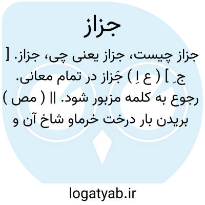 جزاز. [ ج ِ / ج ُ ] ( اِخ ) موضعی است در نواحی قنسرین. و نصر گوید: کوهی است در شام که فاصله آن با فرات یک شب راه باشد، و جرار با دو راء مهمله نیز نقل شده است. ( از معجم البلدان ).، جز از. [ ج ُ اَ ] ( حرف اضافه مرکب ) به استثنای. غیر از. سوای: