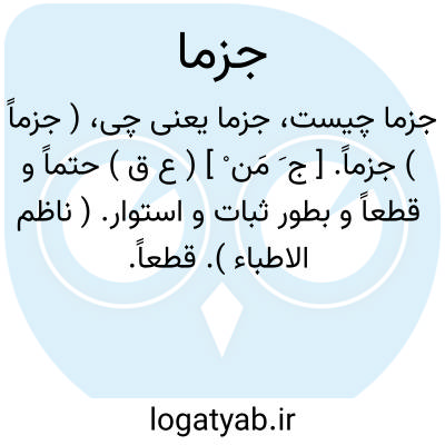 ( جزماً ) جزماً. [ ج َ مَن ْ ] ( ع ق ) حتماً و قطعاً و بطور ثبات و استوار. ( ناظم الاطباء ). قطعاً. البتة. ( یادداشت مؤلف ). بیقین. بطور قطع. بی تردید.