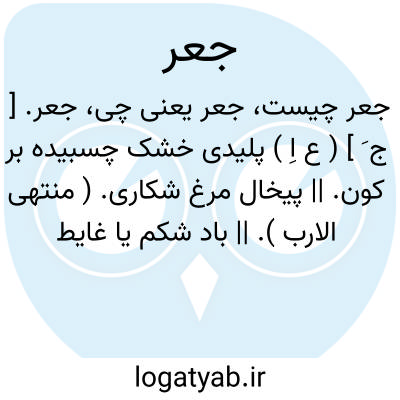جعر. [ ج َ ] ( ع اِ ) پلیدی خشک چسبیده بر کون. || پیخال مرغ شکاری. ( منتهی الارب ). || باد شکم یا غایط درندگان. ( اقرب الموارد ). ج، جُعور.
