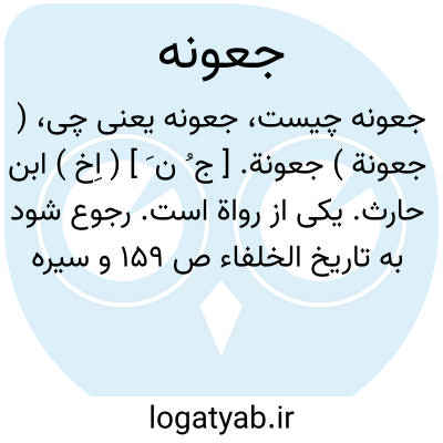 ( جعونة ) جعونة. [ ج ُ ن َ ] ( اِخ ) ابن حارث. یکی از رواة است. رجوع شود به تاریخ الخلفاء ص 159 و سیره عمربن عبدالعزیز ص 72 و 89 و 175 و 263.