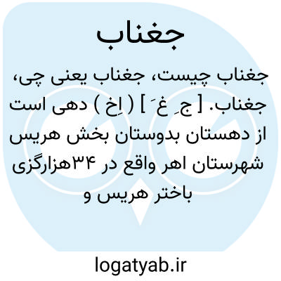 جغناب. [ ج ِ غ َ ] ( اِخ ) دهی است از دهستان بدوستان بخش هریس شهرستان اهر واقع در 34هزارگزی باختر هریس و 3هزارگزی شوسه تبریز - اهر. کوهستانی و هوای آن معتدل است و 411 تن سکنه دارد. آب آن از چشمه و محصول آن غلات و حبوبات و سردرختی و شغل اهالی زراعت و گله داری و صنعت دستی ایشان فرش بافی است.راه مالرو دارد. ( از فرهنگ جغرافیائی ایران ج 4 ).