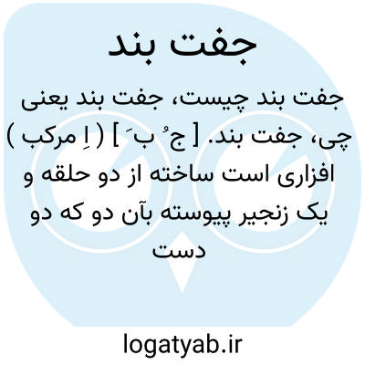 جفت بند. [ ج ُ ب َ ] ( اِ مرکب ) افزاری است ساخته از دو حلقه و یک زنجیر پیوسته بآن دو که دو دست ستور را در وقت چریدن در مرتع بدان بندند. ( یادداشت مؤلف ).