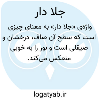 واژه‌ی «جلا دار» به معنای چیزی است که سطح آن صاف، درخشان و صیقلی است و نور را به خوبی منعکس می‌کند. این اصطلاح معمولاً برای توصیف اشیاء، سطوح یا حتی نوشته‌ها و سخنان به کار می‌رود که کیفیت، زیبایی یا جذابیت بصری و ظاهری دارند.