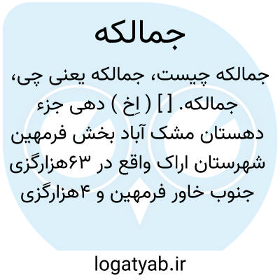 جمالکه. [ ] ( اِخ ) دهی جزء دهستان مشک آباد بخش فرمهین شهرستان اراک واقع در 63هزارگزی جنوب خاور فرمهین و 4هزارگزی باختر راه خمین - اراک. موقع جغرافیایی آن دامنه و هوای آن سردسیری است و دارای 257 تن سکنه و آب آن از چشمه و محصول آن غلات و شغل اهالی زراعت و گله داری و قالی بافی است. از راه شوسه اراک به خمین راه فرعی به آبادی دارد. ( از فرهنگ جغرافیایی ایران ج 2 ).