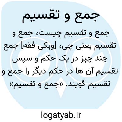 [ویکی فقه] جمع چند چیز در یک حکم و سپس تقسیم آن ها در حکم دیگر را جمع و تقسیم گویند.