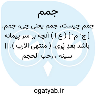 جمم. [ ج َ م َ ] ( ع اِ ) آنچه بر سر پیمانه باشد بعدِ پُری. ( منتهی الارب ). || سینه، رحب الحجم واسعالصدر. ( اقرب الموارد ). || ( مص ) بی نیزه شدن مرد. || بی سرون گردیدن گوسفند. || بسیار بسیارگوشت شدن زن. || بی کنگره بودن خانه. ( منتهی الارب ). بی کنگره شدن عمارت. ( کشاف اصطلاحات الفنون ). || ( اصطلاح عروض ) اجتماع عَقْل و خَرْم است در مفاعلتن و این با اسقاط میم و لام حاصل شود وفاعتن گردد و سپس به فاعلن نقل شود چنانکه گویند: