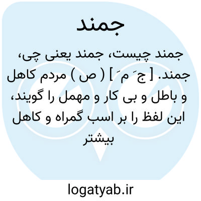 جمند. [ ج َ م َ ] ( ص ) مردم کاهل و باطل و بی کار و مهمل را گویند، این لفظ را بر اسب گمراه و کاهل بیشتر اطلاق کنند و در اصل جایمند بوده بکثرت استعمال الف و یا افتاده جمند شده. ( برهان ). چمند. چمن.( حاشیه برهان چ معین از تعلیقات نوروزنامه 117 ).