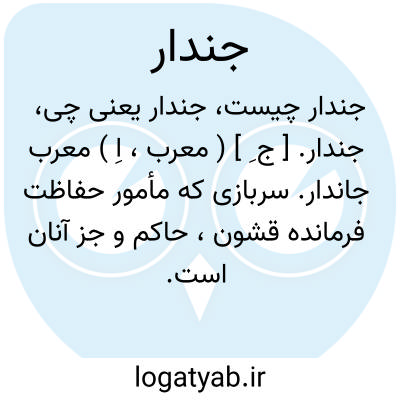 جندار. [ ج ِ ] ( معرب، اِ ) معرب جاندار. سربازی که مأمور حفاظت فرمانده قشون، حاکم و جز آنان است. نگهبان. ج، جنادره. ( فرهنگ فارسی معین ).