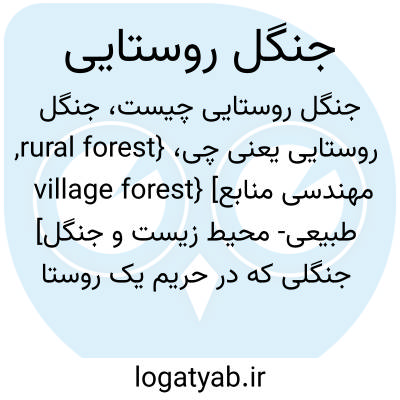{rural forest, village forest} [مهندسی منابع طبیعی- محیط زیست و جنگل] جنگلی که در حریم یک روستا واقع است و مالکیت آن به صورت مشاع در اختیار اهالی روستاست