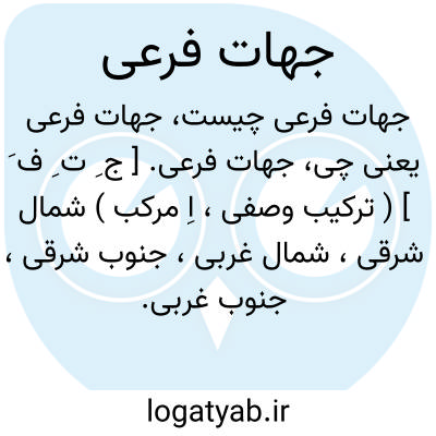 جهات فرعی. [ ج ِ ت ِ ف َ ] ( ترکیب وصفی، اِ مرکب ) شمال شرقی، شمال غربی، جنوب شرقی، جنوب غربی.