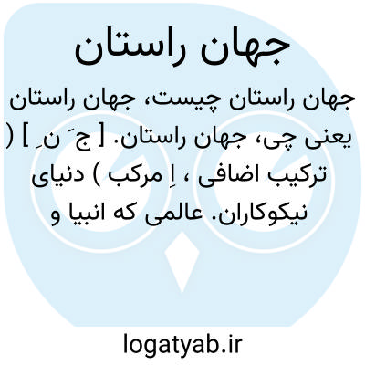 جهان راستان. [ ج َ ن ِ ] ( ترکیب اضافی، اِ مرکب ) دنیای نیکوکاران. عالمی که انبیا و اولیا در آن میزیند. عالم امر. ( فرهنگ فارسی معین ).