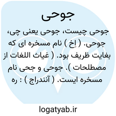 جوحی. ( اِخ ) نام مسخره ای که بغایت ظریف بود. ( غیاث اللغات از مصطلحات ). جوحی و جحی نام مسخره ایست. ( آنندراج ): ره حرف کرم تا کی کنم طی نخواهد گشت جوحی حاتم طی.یحیی کاشی.جوحی نداشت کاری بر خویش زد درفشی.یحیی کاشی.رفت جوحی چادر و روبند ساخت در میان آن زنان شد ناشناخت.مولوی.رجوع به جحی شود.