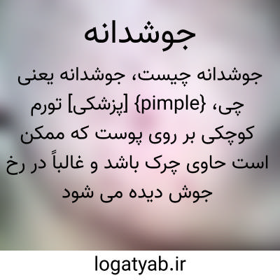 {pimple} [پزشکی] تورم کوچکی بر روی پوست که ممکن است حاوی چرک باشد و غالباً در رخ جوش دیده می شود