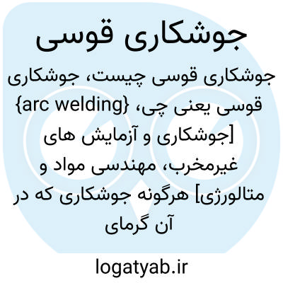 {arc welding} [جوشکاری و آزمایش های غیرمخرب، مهندسی مواد و متالورژی] هرگونه جوشکاری که در آن گرمای ورودی از یک قوس الکتریکی تأمین شود