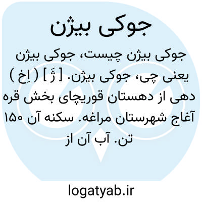 جوکی بیژن. [ ژَ ] ( اِخ ) دهی از دهستان قوریچای بخش قره آغاج شهرستان مراغه. سکنه آن 150 تن. آب آن از چشمه سارها. محصول آن غلات، نخود، بزرک، زردآلو. شغل اهالی زراعت. صنایع دستی آنجا جاجیم بافی. راه مالرو دارد. ( از فرهنگ جغرافیائی ایران ج 4 ).