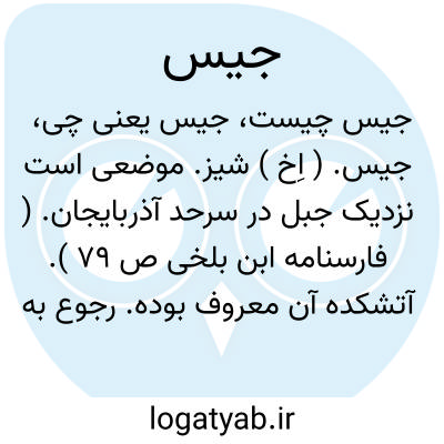 جیس. ( اِخ ) شیز. موضعی است نزدیک جبل در سرحد آذربایجان. ( فارسنامه ابن بلخی ص 79 ). آتشکده آن معروف بوده. رجوع به مزدیسنا ص 197، 205 شود.