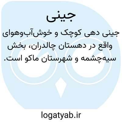 جینی. [ ج َی َن ْ نی ] ( اِخ ) دهی از دهستان چالدران بخش سیه چشمه شهرستان ماکو. آب آن از چشمه، محصول آن غلات و شغل اهالی زراعت و گله داری و صنایع دستی جاجیم بافی است. راه ارابه رو دارد. ( از فرهنگ جغرافیائی ایران ج 4 ).
