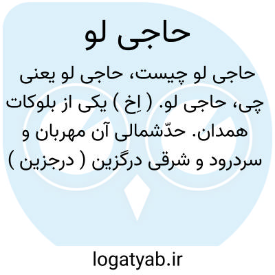 حاجی لو. ( اِخ ) یکی از بلوکات همدان. حدّشمالی آن مهربان و سردرود و شرقی درگزین ( درجزین ) وجنوبی چاربلوک و غربی مهربان و خدابنده لواست. این ناحیه آب و هوائی معتدل دارد و مرکز آن گردآباد است و دارای 93 قریه و 38000 مردم است. رجوع به جغرافیای سیاسی ایران تألیف کیهان ص 380 و 383 و 384 شود.