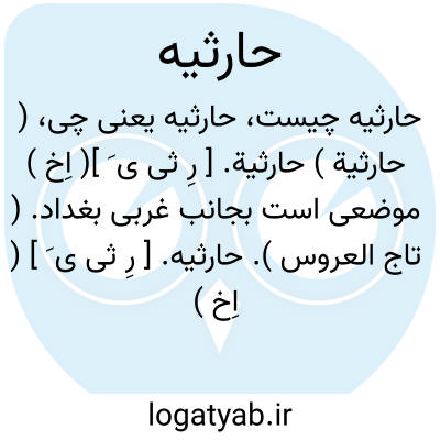 ( حارثیة ) حارثیة. [ رِ ثی ی َ ]( اِخ ) موضعی است بجانب غربی بغداد. ( تاج العروس ).