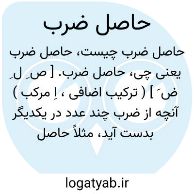 حاصل ضرب. [ ص ِ ل ِ ض َ ] ( ترکیب اضافی، اِ مرکب ) آنچه از ضرب چند عدد در یکدیگر بدست آید، مثلاً حاصل ضرب 5 در 6، سی باشد: 30 = 6 * 5.