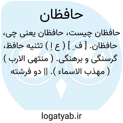 حافظان. [ ف ِ ] ( ع اِ ) تثنیه حافظ، گرسنگی و برهنگی. ( منتهی الارب ) ( مهذب الاسماء ). || دو فرشته راست و چپ مردم.