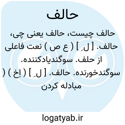 حالف. [ ل ِ ] ( ع ص ) نعت فاعلی از حلف. سوگندیادکننده. سوگندخورنده.