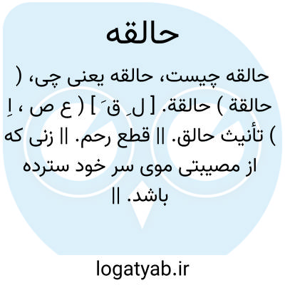 ( حالقة ) حالقة. [ ل ِ ق َ ] ( ع ص، اِ ) تأنیث حالق. || قطع رحم. || زنی که از مصیبتی موی سر خود سترده باشد. || بَدْیُمن. ( منتهی الارب ). مشئوم.