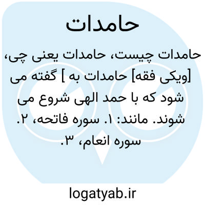 [ویکی شیعه] حامدات به سوره هایی گفته می شود که با کلمه حمد شروع می شوند. مانند: سوره های فاتحه، انعام، کهف، سباء، فاطر.