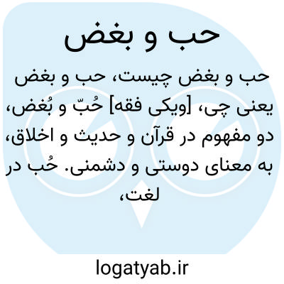 [ویکی فقه] حُبّ و بُغض، دو مفهوم در قرآن و حدیث و اخلاق، به معنای دوستی و دشمنی.