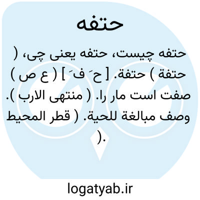 ( حتفة ) حتفة. [ ح َ ف َ ] ( ع ص ) صفت است مار را. ( منتهی الارب ). وصف مبالغة للحیة. ( قطر المحیط ).