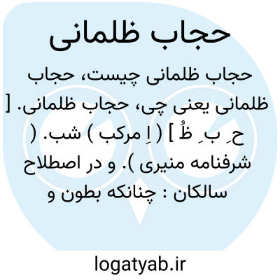 حجاب ظلمانی. [ ح ِ ب ِ ظُ ] ( اِ مرکب ) شب. ( شرفنامه منیری ). و در اصطلاح سالکان: چنانکه بطون و قهر و جلال و نیز جمله صفات ذمیمه. ( آنندراج ). رجوع به حجاب شود.