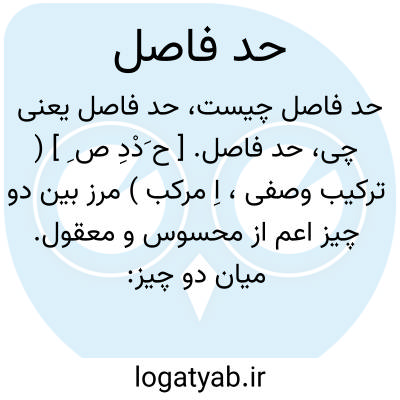حد فاصل. [ ح َدْدِ ص ِ ] ( ترکیب وصفی، اِ مرکب ) مرز بین دو چیز اعم از محسوس و معقول. میان دو چیز: طور؛ حد فاصل میان دو چیز. طخوم؛ حد فاصل میان دو زمین. ( منتهی الارب ).