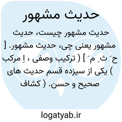 حدیث مشهور. [ ح َ ث ِ م َ ] ( ترکیب وصفی، اِ مرکب ) یکی از سیزده قسم حدیث های صحیح و حسن. ( کشاف اصطلاحات الفنون از خلاصة الخلاصة ).