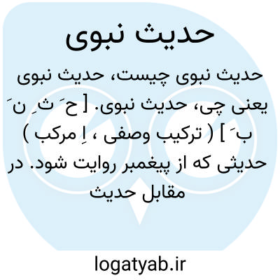 حدیث نبوی. [ ح َ ث ِ ن َ ب َ ] ( ترکیب وصفی، اِ مرکب ) حدیثی که از پیغمبر روایت شود. در مقابل حدیث الهی و حدیث قدسی. در مقابل احادیث غیرنبوی، و منقولات از ائمه.