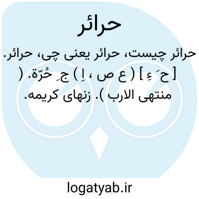 حرائر. [ ح َ ءِ ] ( ع ص، اِ ) ج ِ حُرّة. ( منتهی الارب ). زنهای کریمه.