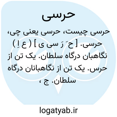 حرسی. [ ح َ رَ سی ی ] ( ع اِ ) نگاهبان درگاه سلطان. یک تن از حرس. یک تن از نگاهبانان درگاه سلطان. ج، حرس.